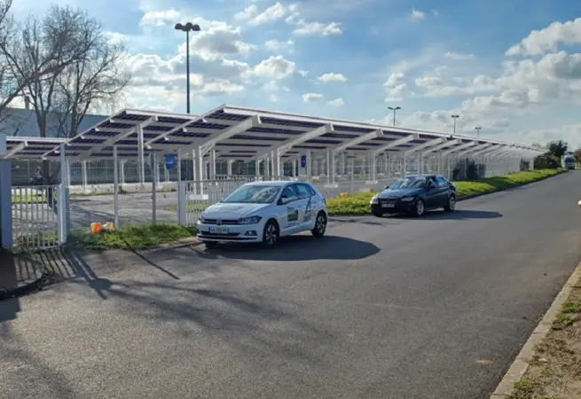 Dès le mois de juillet 2024, des ombrières avec des panneaux photovoltaïques seront installées sur le parking du siège social de Compagnie Léa Nature à Périgny. Crédit : Compagnie Léa Nature.